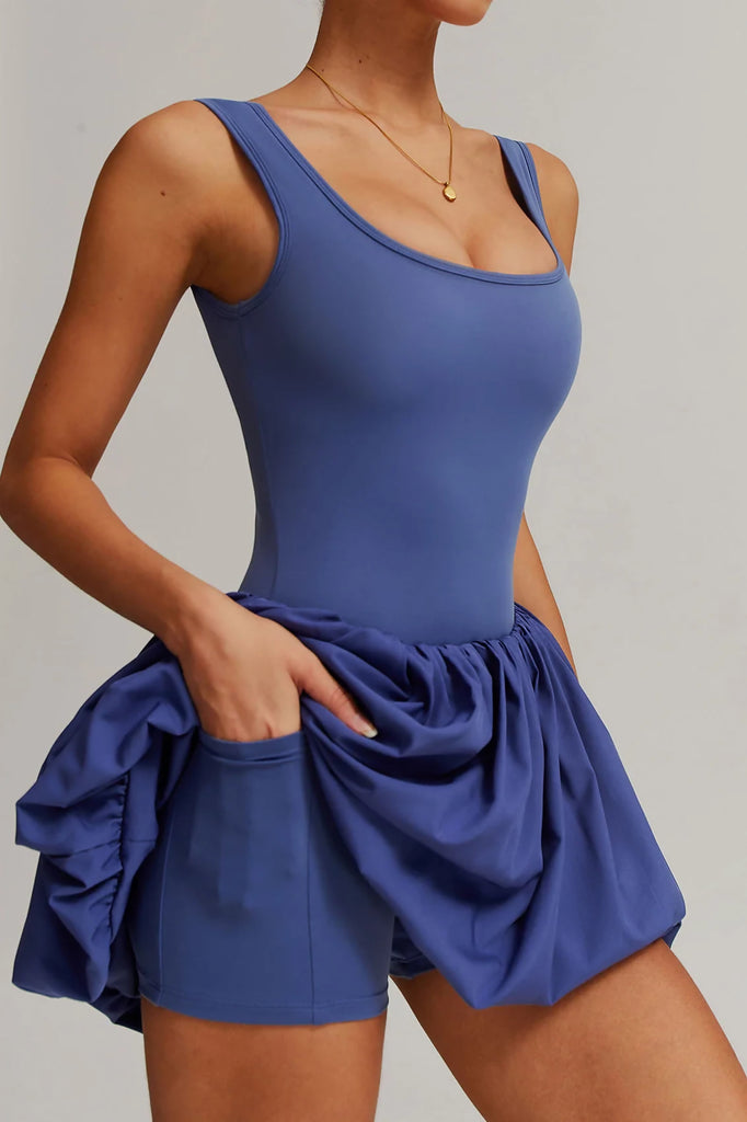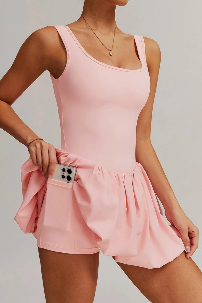 Make a statement in the Bubble Belle Dress — a bold yet feminine design that blends playful volume with sleek performance. Featuring a sculpted tank-style bodice, built-in bra with removable pads and integrated shorts with hidden pockets, this women’s padel dress delivers confidence, comfort and standout style.
